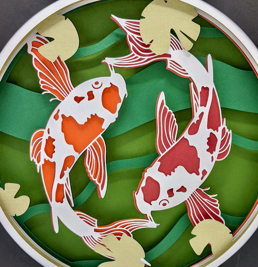 Koi Fish Pond Shadow Box